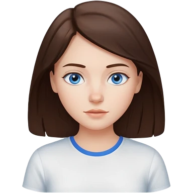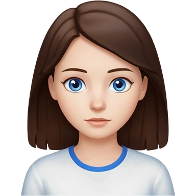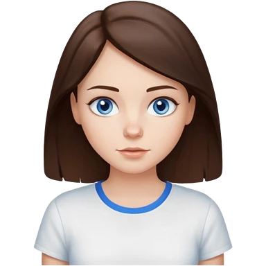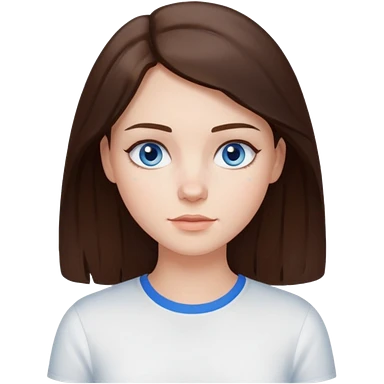 Create an emoji of a white Girl with brunette hair blue eyes faint freckles and hair to her chest wearing a white shirt emoji