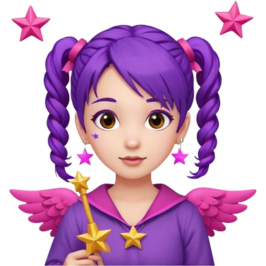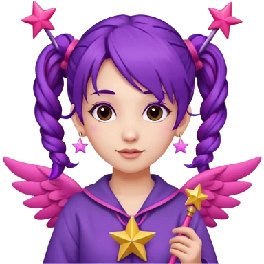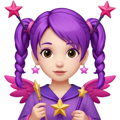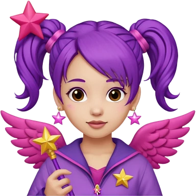 Create an emoji of a woman with pink hair tied into two pigtails. She is a game streamer, wearing green headphones, holding a MacBook, and dressed in a blue outfit. emoji | AI Emoji Generator
