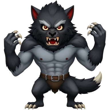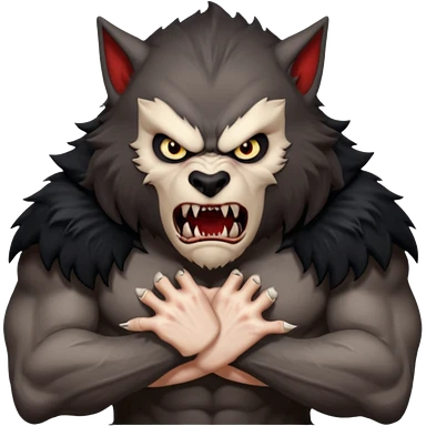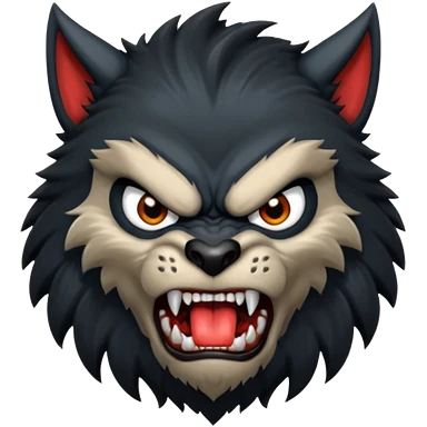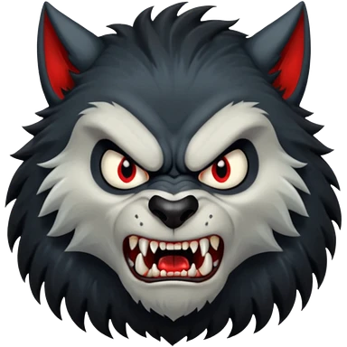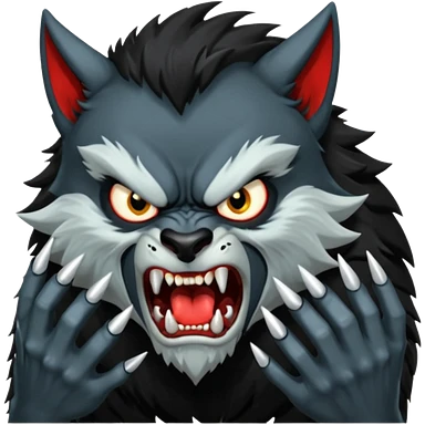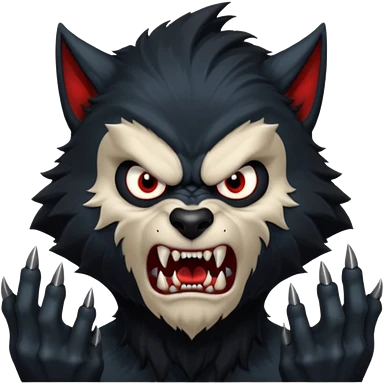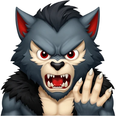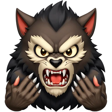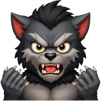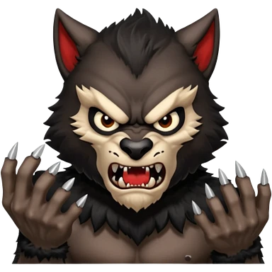Create an emoji of Werewolf half bodied till waist sharp nails angry face black emoji | AI Emoji Generator