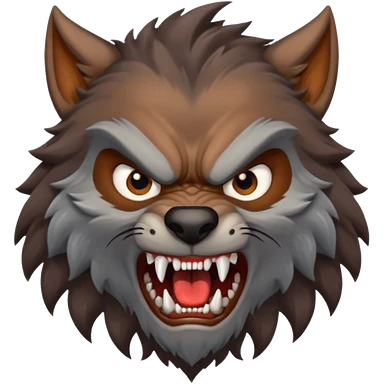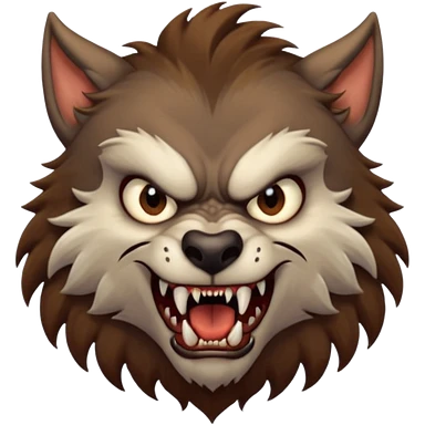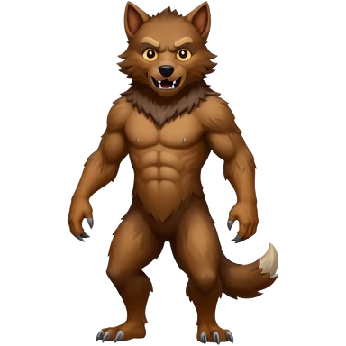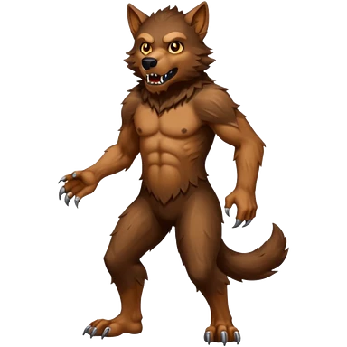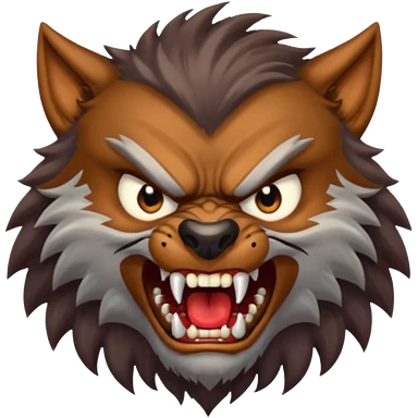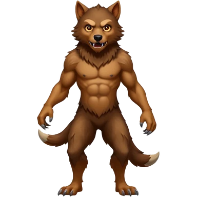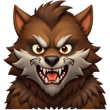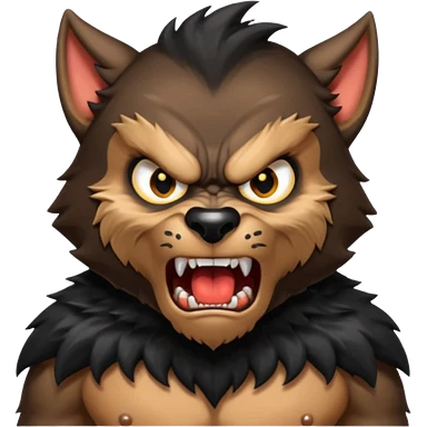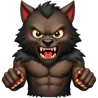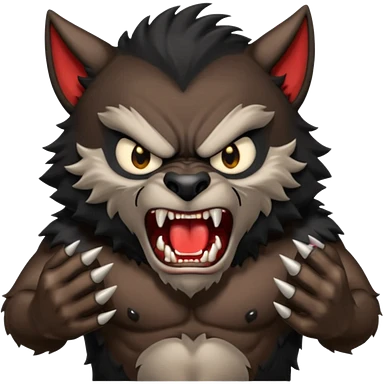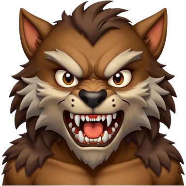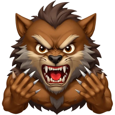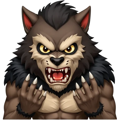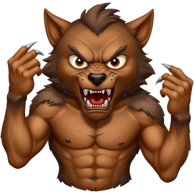Create an emoji of Werewolf half bodied till waist sharp nails angry face brown emoji