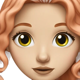Create an emoji-style character of a white girl with bright green eyes, long black curly or wavy hair, wearing hoop earrings. She has a green v-neck top, wears mascara, and is styled with soft pink mauve lipstickemoji