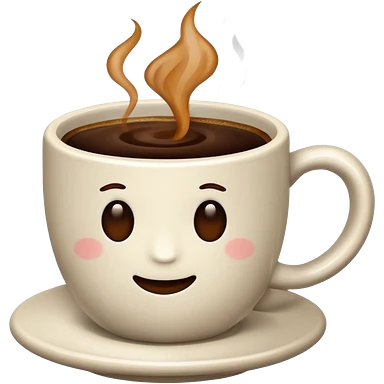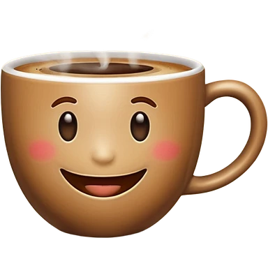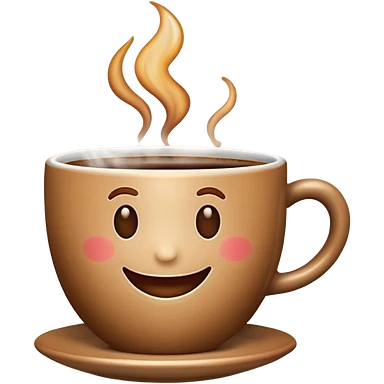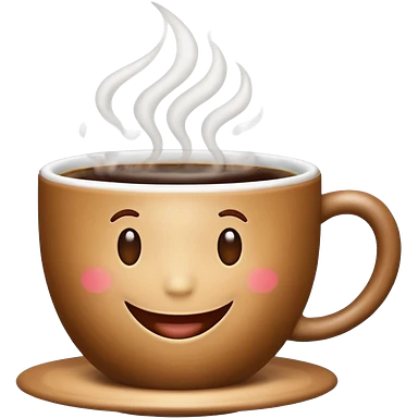 Create an emoji-style image of a warm morning cup of coffee with steam rising and a cheerful smiling face on the cup. The background should feel cozy and bright, like morning sunshine. emoji | AI Emoji Generator