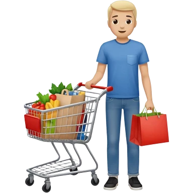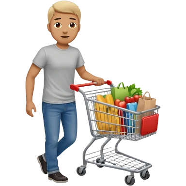 Create an emoji with a shopping cart. The design should be sleek and minimalistic, featuring a classic shopping cart with a simple frame and wheels. The cart should have a friendly, clean look with smooth lines, and it should appear dynamic and modern, with subtle details like the basket grid and handleemoji
