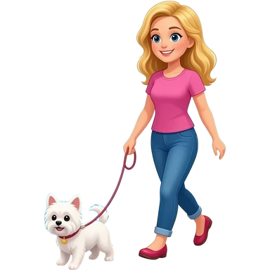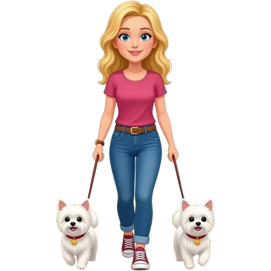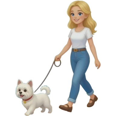 Emoji Vrouw blond haar wandeld met kleine malthes langs rivier emoji