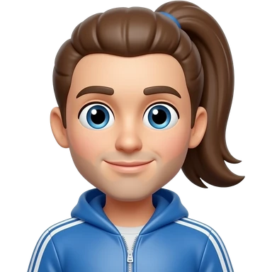 guy midway transformed into shiny rubber emoji jogger girl w/ brown ponytail emoji