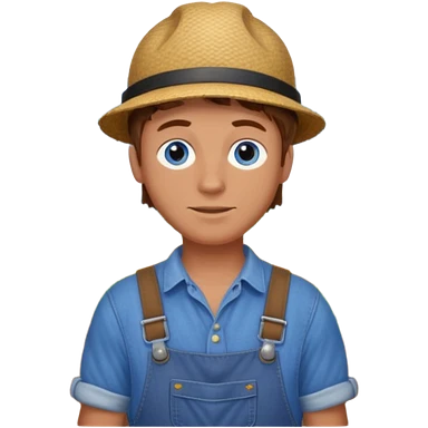 CREATE ME A NICE FARMER BOY BROWN HAIR TANNED SKIN AND BLUE EYES emoji | AI Emoji Generator