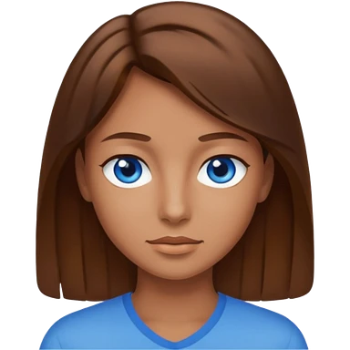 Girl with brown hair and blue eyes with tanned but white skin emoji