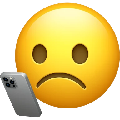 create me a round face simplist yellow emoji, looking at his smartphone his head tilted down, he looks sad emoji