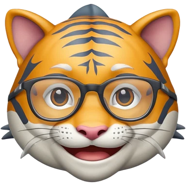 create me a slack emoji of a very old tiger shark with grey hair and glasses emoji | AI Emoji Generator