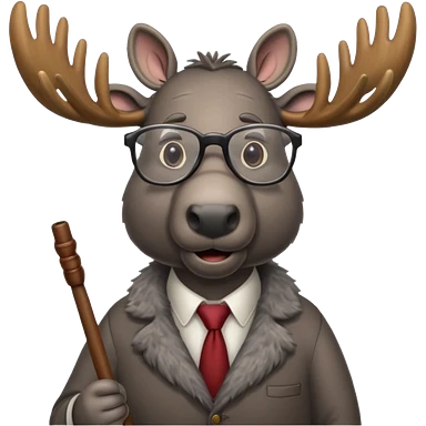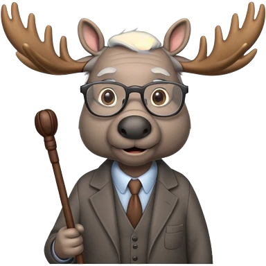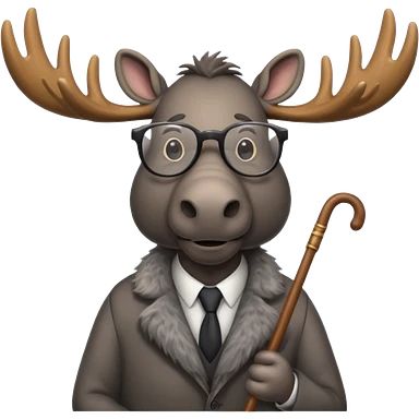 Create a slack emoji of a moose that looks very old. He may have grey hair, glasses, and a cane. emoji