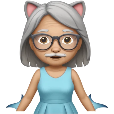 create me a slack emoji of a very old tiger shark, dressed like an old lady, with grey hair and glasses emoji
