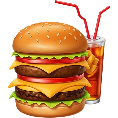 A single burger,, soft drink, fries image for my food vertical in the super app emoji