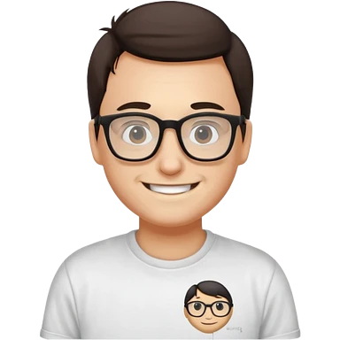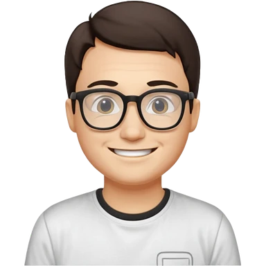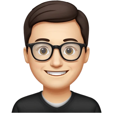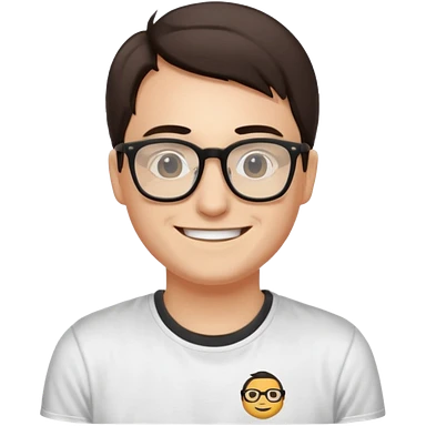 Average dark brunette hair, with glasses dark brown eyes,lashes, black thin eyebrows, emoji