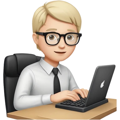 white guy with nose above average with black hair and beard with laptop and headset emoji
