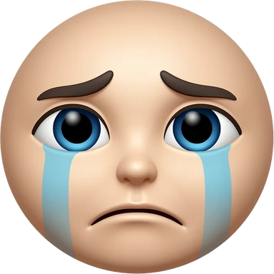 mix of these two 🥺☺️ but make it classic orginal emoji not woman or man face and without hearts and a little bit sad but still smile, make the drops blue like cry emoji