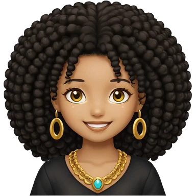 Create a black chibi girl with long afro hair and beautiful gold eyes with a smile emoji