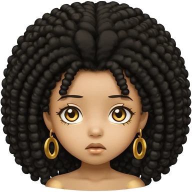 Create an iOS-style emoji of Ice Spice. Neutral facial expression, front-facing head only. Curly afro hairstyle. Clean Apple emoji style, smooth shading, simple shapes, plain background. emoji