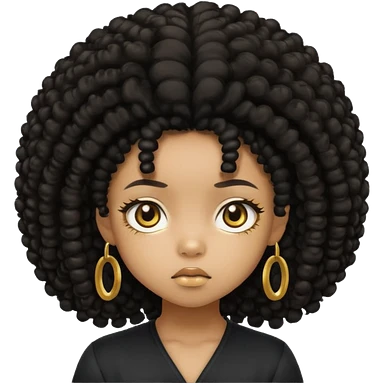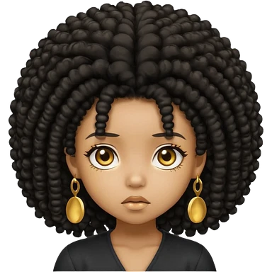 Create a black chibi girl with long afro hair and beautiful gold eyes give her a confusing expression emoji