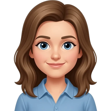 detailed emoji illustration of a curvy woman with long light brown wavy hair, light brown eyes and round glasses writing her book on a laptop, focused creative expression, cozy writer vibe, cute emoji style emoji