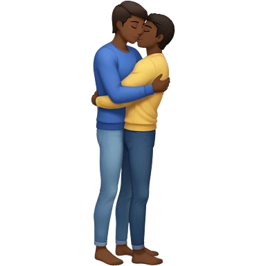 1 adult male dark skin ,1 light skin dark hair adult male, naked, cuddling, kissing, love passionate, full body view emoji