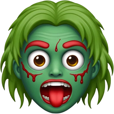 emoji de zumbi estilo WhatsApp, cabeça verde, cabelo cacheado vermelho volumoso, olhos brancos brilhando, expressão divertida e assustadora, cartoon, linhas limpas, fundo transparente, qualidade alta emoji