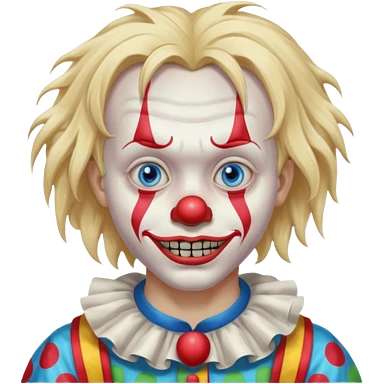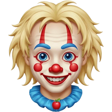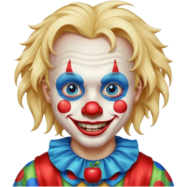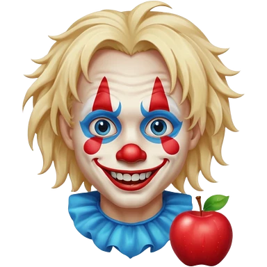 creepy clown boy with messy very long long blonde hair, blue eyes, make it more like an apple emoji emoji