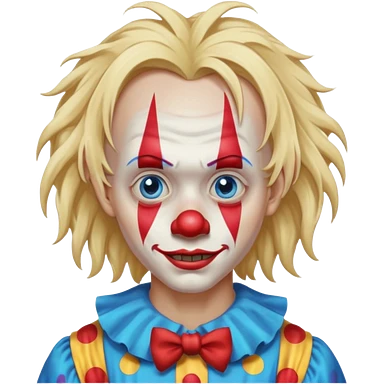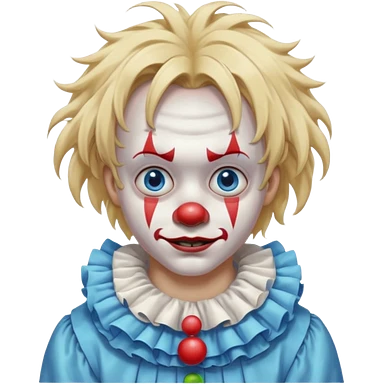 creepy clown boy with messy very long long blonde hair, blue eyes emoji