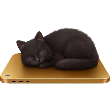 iPad icon bronze metallic with cute dark fluffy kitty sleeping above regular wood floor with white walls emoji