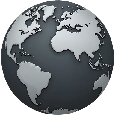 Flat monochrome globe emoji, dark grey Americas silhouette, transparent bg, no gradients emoji