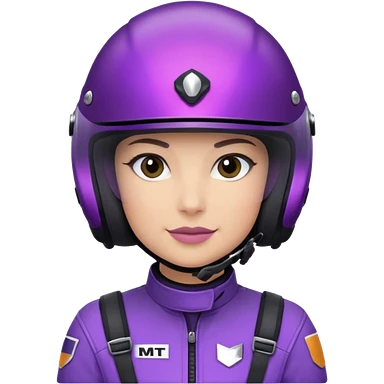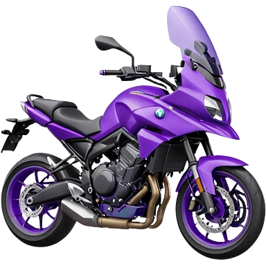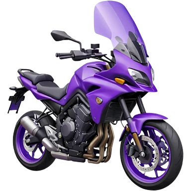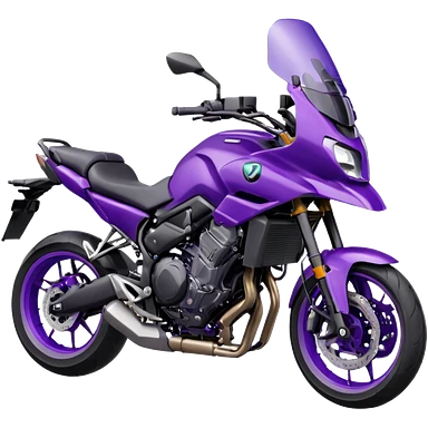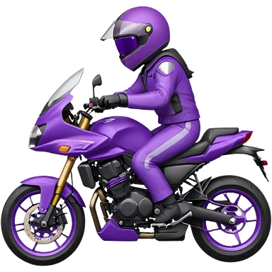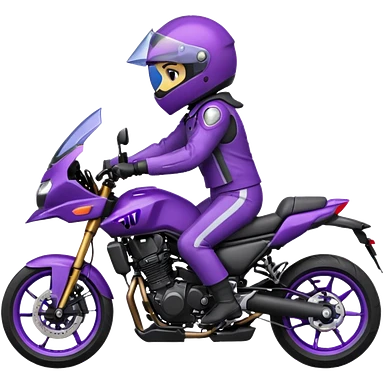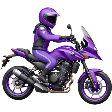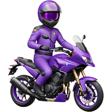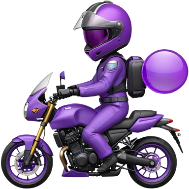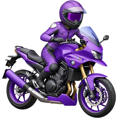 Créer un emoji avec une moto mt07 sport noir mate / violet iridescent très foncé, pare-brise de la moto violet. Avec une femme pilote dessus, visage masqué par la visière violette . Avec en arrière plan cercle violet. emoji | AI Emoji Generator