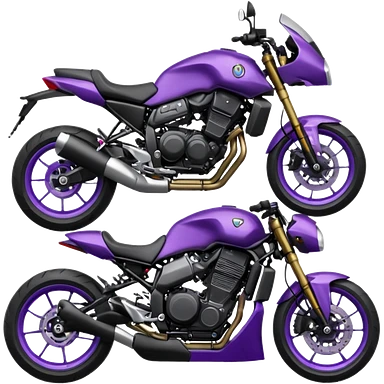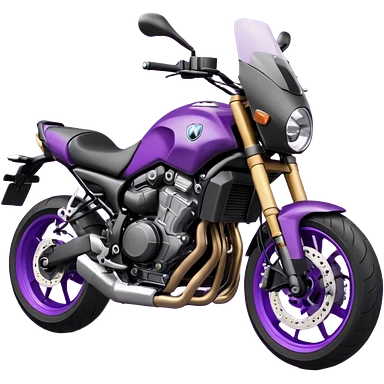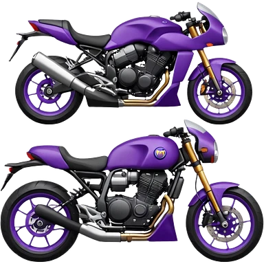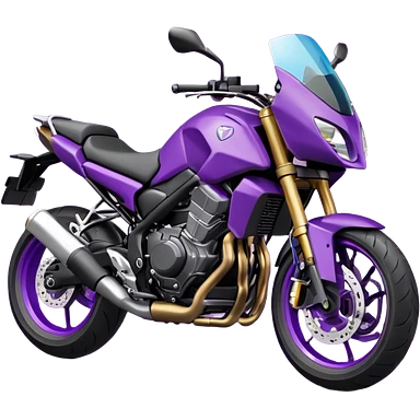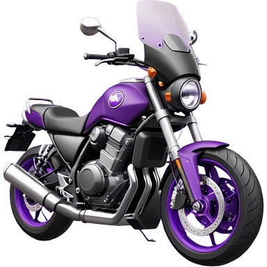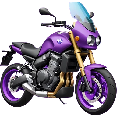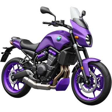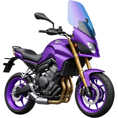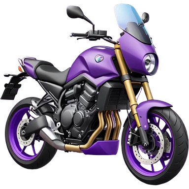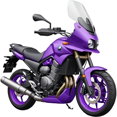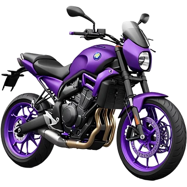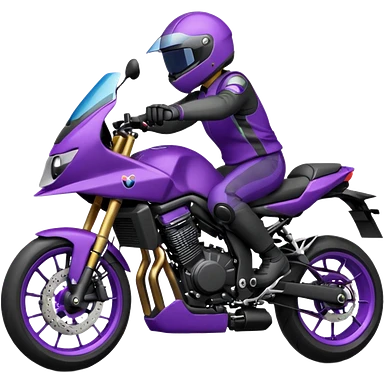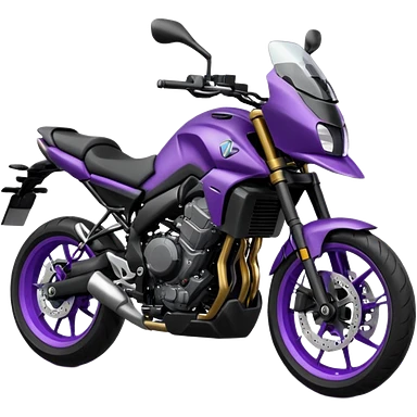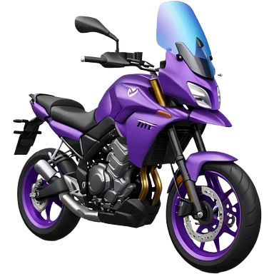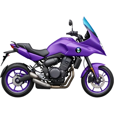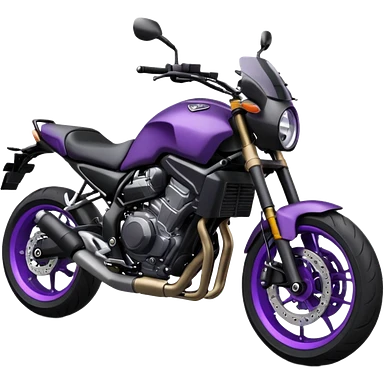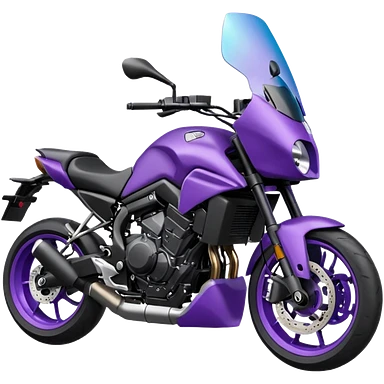 Créer un emoji copiable sur mon système iOS avec une moto mt07 noir mate / violet plus foncé que tu as et iridescent. le style de la mt07 doit être en sport. Avec pilote dessus visière violet bulle de la moto violet aussi. Avec fond arrière violet emoji