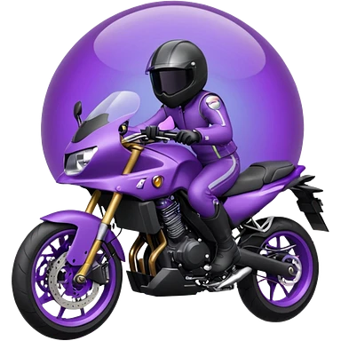 Créer un emoji copiable sur mon système iOS avec une moto mt07 noir mate / violet plus foncé que tu as et iridescent. le style de la mt07 doit être en sport. Avec pilote dessus visière violet bulle de la moto violet aussi. Avec fond arrière violet emoji | AI Emoji Generator