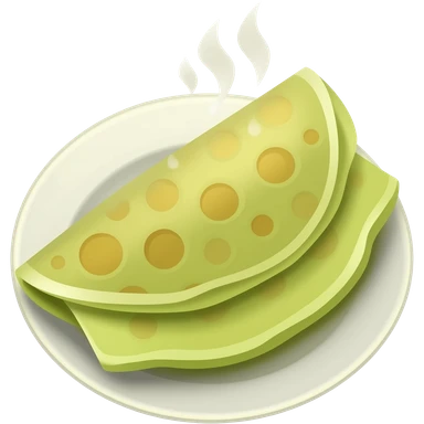 Crepe folded into triangle with maple syrup drizzled in zigzag over the top and a swirl of white whipped cream on the top right emoji
