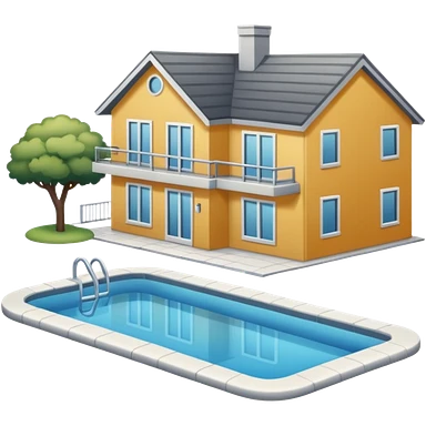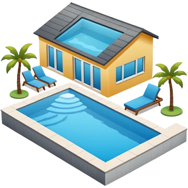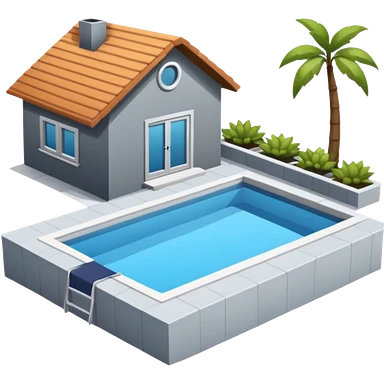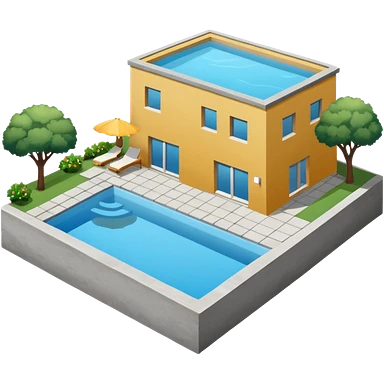 créer une maison simple en iso teinte de gris avec une pisicne à coté emoji