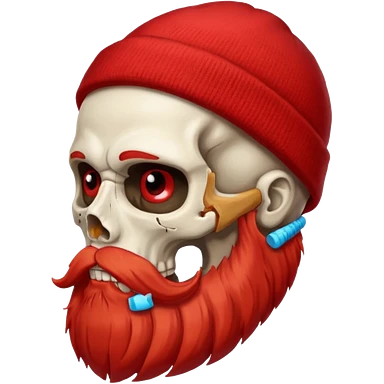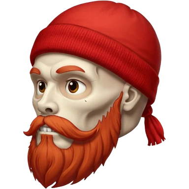 detailed human skull with red mustache and full beard side view wearing beanie emoji