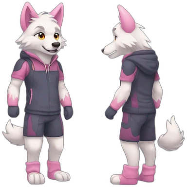 An full body furry anthropomorphic wolf in love rosy cheeks emoji