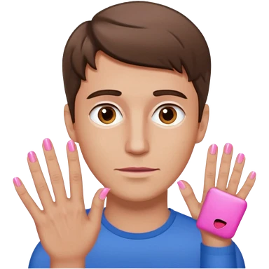 White man with short brown hair, long face, and pink nails like this đ emoji