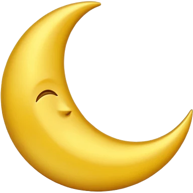 A 3D Apple-style emoji of a crescent moon (hilal), smooth golden-yellow surface, shiny and glowing, minimal and clean design, cute and soft cartoon style. emoji