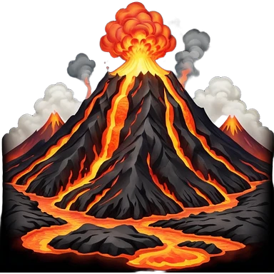 Volcano Planet, lava rivers and erupting peaks. emoji