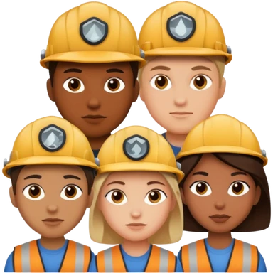 Crew de chica rubia, chico con barba y chica pelirroja con gafas emoji
