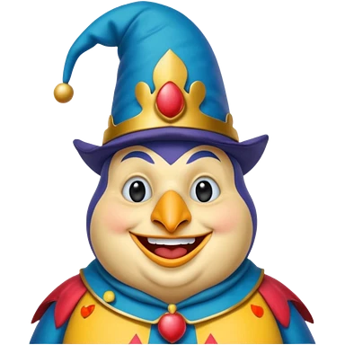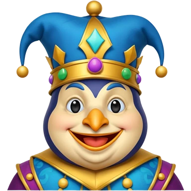 crazy colorful pudgy penguin jolly joker, medieval, vintage, court jester, mac os icon, blue color emoji