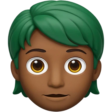 Crie um Memoji/emoji em estilo 3D, com pele verde, expressão assustada, olhos grandes castanhos, sem óculos. Cabelo curto e cacheado, bagunçado, de cor preta. Inclua pequenos detalhes como marcas sutis no rosto, mantendo o estilo cartoon da Apple. Use iluminação suave e fundo branco.emoji