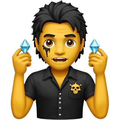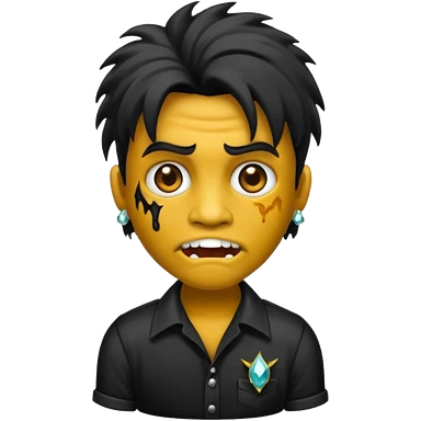 Emoji masculino de zumbi estilo iPhone,com cabelo ondulado mullet e preto, camisa preta e brincos de diamante emoji