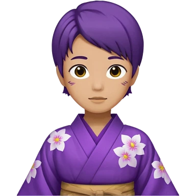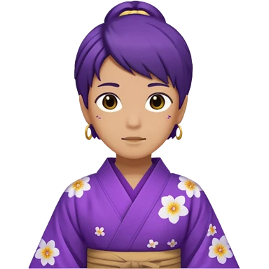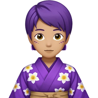 Crie um emoji de um homem com cabelo espetado roxo, fazendo careta e mostrando o dedo do meio com ambas as mãos. Ele deve usar um agasalho verde com listras brancas nos ombros. Use as cores vibrantes e o estilo do emoji original. emoji
