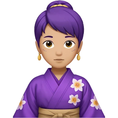 Crie uma garota zumbi com cabelo cacheado roxo, óculos preto e sardas com a pele verde emoji | AI Emoji Generator