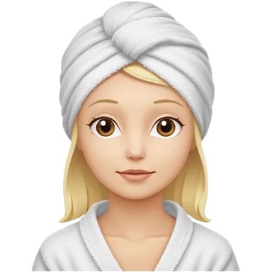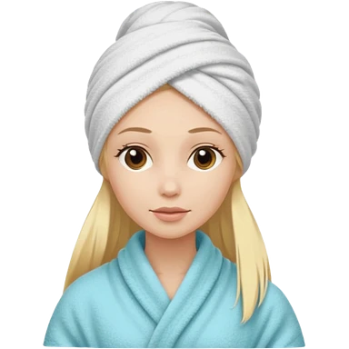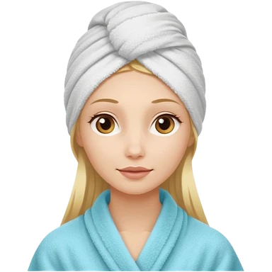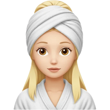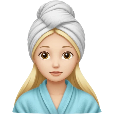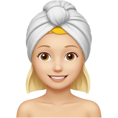 mulher branca e loira cabelo longo com toalha na cabeça tipo spa emoji
