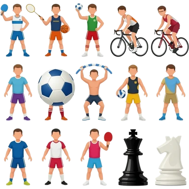 Chat, crie uma imagem com atletas com algumas dessas modalidades: atletismo, badminton, basquete, bocha, bolão, ciclismo, futebol 7, futsal, ginástica rítmica, handebol, handebol de praia, natação, rugby, tênis, tênis de mesa, vôlei de praia, voleibol e xadrez emoji