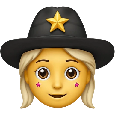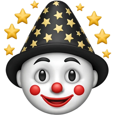 Crie um emoji com um chapéu de palhaço em preto e branco e com estrelinhas na cabeça como se o emoji estivesse tonto emoji