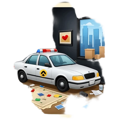 Icon for Action & Crime Reading: an open book with action-packed scenes on the pages, including detectives, chase scenes, and suspenseful moments. Add a gun, handcuffs, and a magnifying glass, while keeping the book as the main focus. Transparent background. emoji