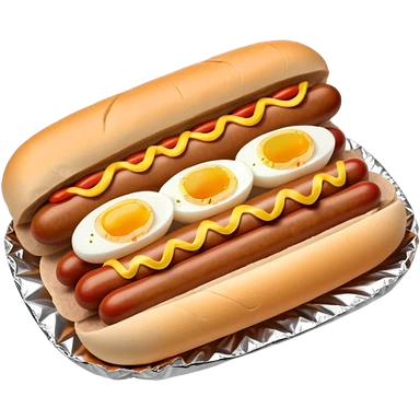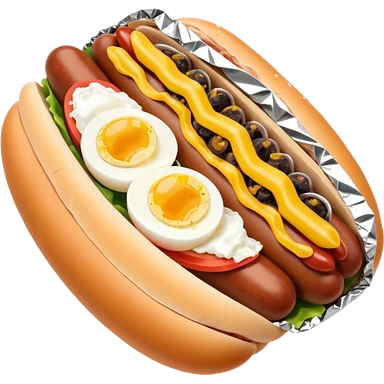 steamed ground pork with raisins, sliced boiled egg, and hotdog wrapped in foil emoji
